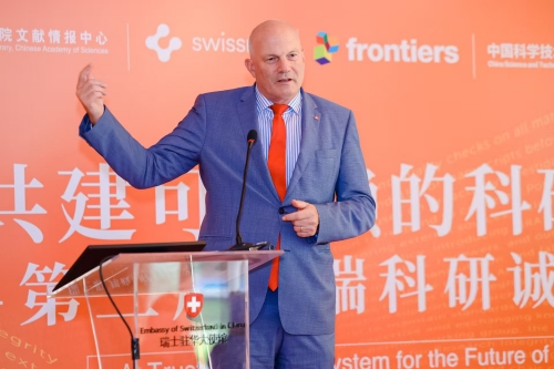 2025年9月22日,中国北京,瑞士驻华使馆。值此中瑞建交75周年之际,瑞士驻华大使馆、中科院文献情报中心、瑞士联邦政府科技文化中心、中国科技交流中心、Frontiers Open Science在瑞士驻华大使馆共同隆重举办共建可信赖的科研生态:第三届中瑞科研诚信研讨会。
