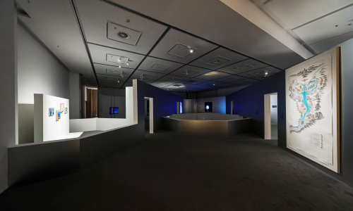 “斗转星移”以中华文明的宇宙观演进为核心,通过“苍穹”“天机”“厚土”三个章节,从神话原型到当代实践,层层拆解古人对宇宙的认知逻辑,呈现“天人合一”的文明发展脉络。此次展览不仅是对晋城古建宇宙观的视觉转译,更以玉版八角星纹和远古洛书图符为灵感,通过“八方”格局的空间设计,引导观众步入首尾相接的观展路径,回溯“上观星象、下察厚土”的探索之路。
