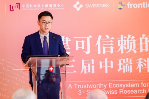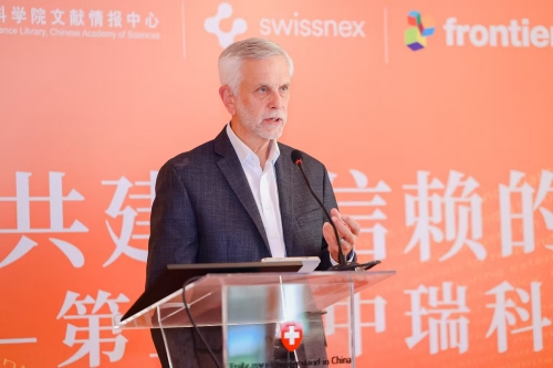 瑞士驻华大使白瑞谊,中国科学院文献情报中心主任刘细文,瑞士出版商Frontiers的首席执行主编Frederick FENTER,中国科技交流中心欧洲处张小伟分别在研讨会上致辞。
