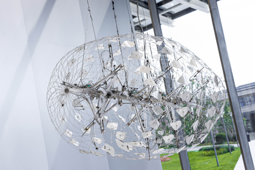 赵潇潇,《云图》,2022,铝、电子元件、碳纤维杆。晋城“古建新语”当代艺术展——“斗转星移”艺术家群展展览现场,晋城城市体验中心,2025。(图自UCCA Lab)