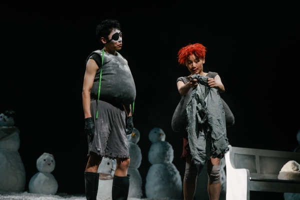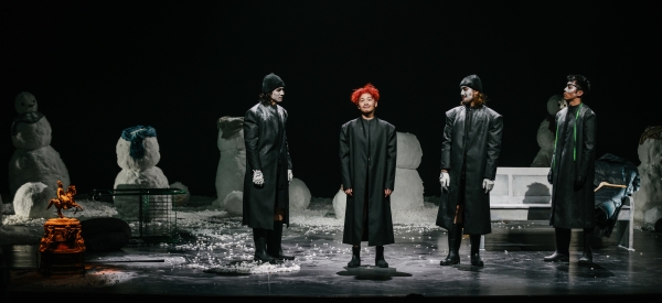 在老舍剧场的舞台上,剧组运用了“雪人”——一个既冷峻又幽默的形象。它们与阿卡基一样脆弱易碎,却也构成了彼得堡的荒诞诗意。所有的角色,都带着喜剧的外壳与悲剧的内核,他们在舞台上漂浮、游走,如同幻觉的碎片,让故事不断地在戏剧与梦境之间穿梭。